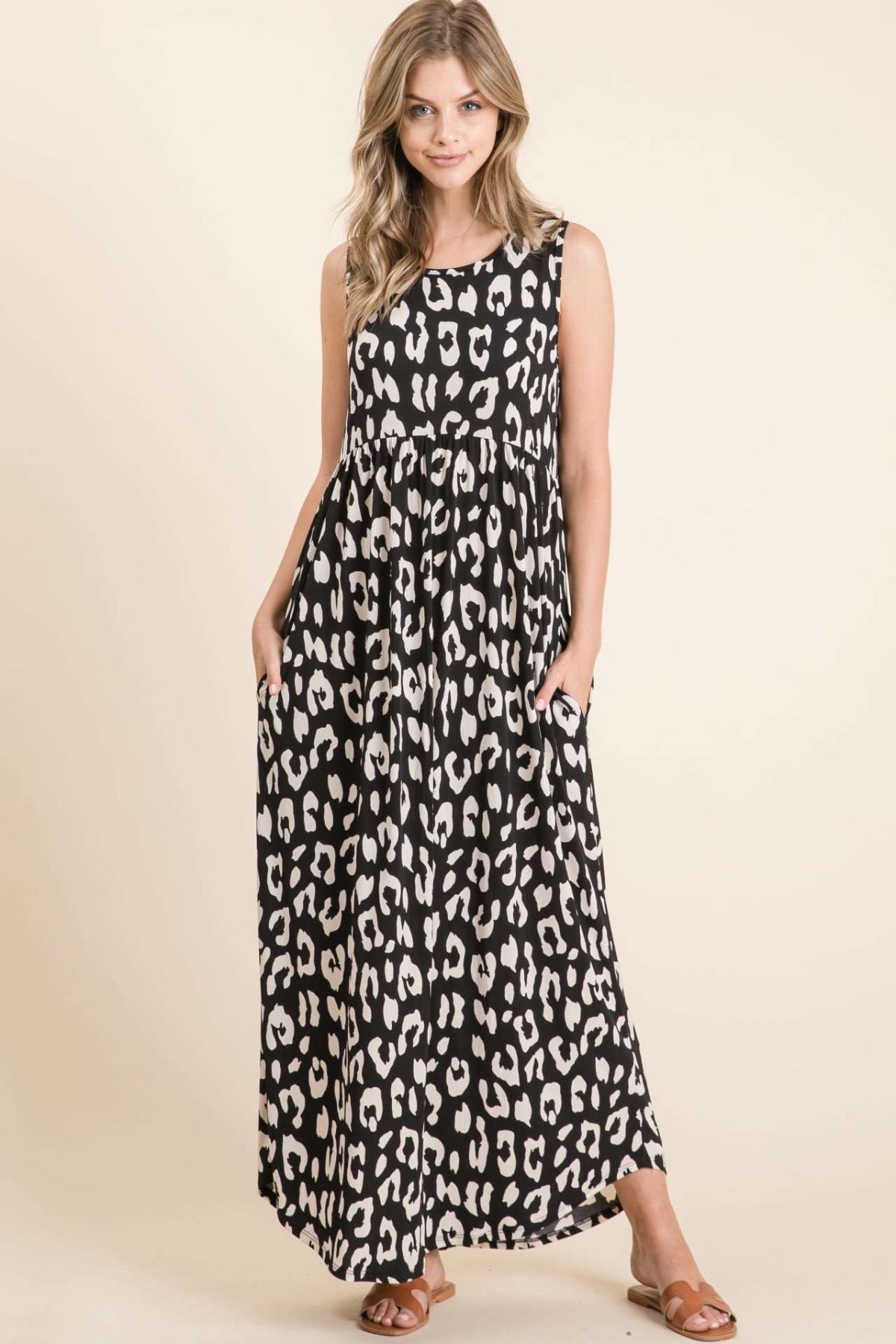 Black Leopard Maxi Tank Dress
