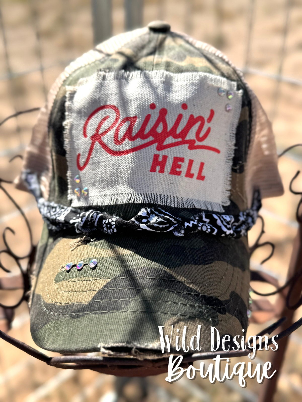 Raisin' Hell Frayed Patch Camo/Beige Hat